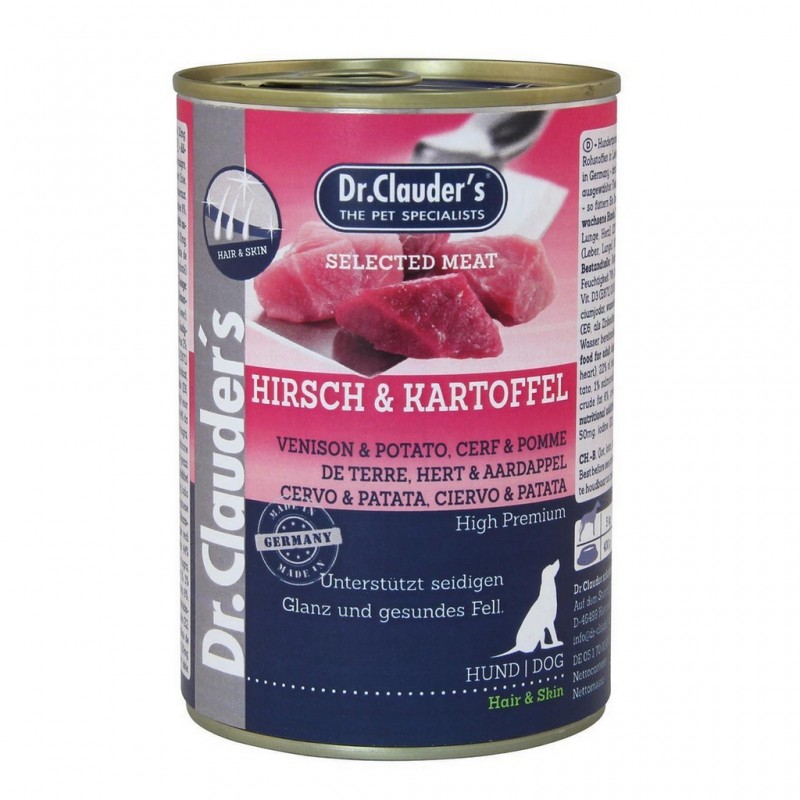 L'aliment au cerf & pomme de terre de la marque Dr Clauder's avec de la viande de premier choix, vous permet d'offrir le meilleur à votre chien. La viande fraîche permet d'augmenter la valeur nutritionnelle de 50%, comparée à des boites d'aliments ordinaires. Les substances actives ajoutées permettent une meilleure assimilation et la prévention de bon nombre de désagréments.