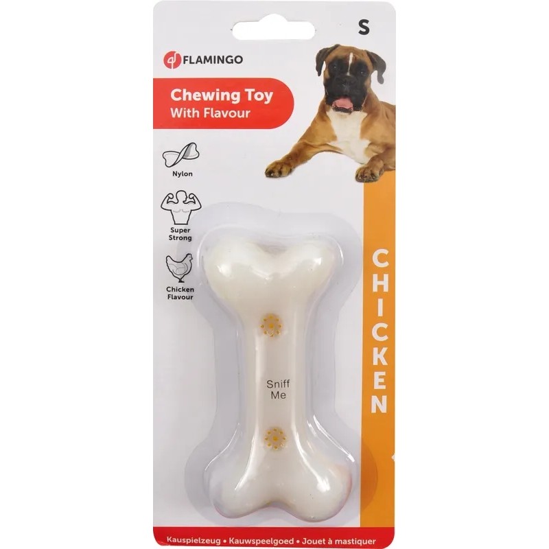 Jouet os en nylon comestible très résistant, saveur poulet.